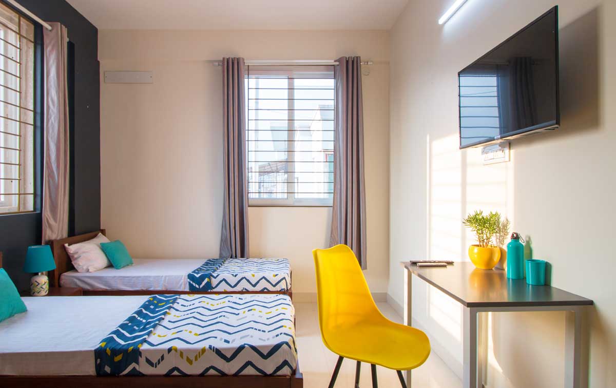 Grexter Epsilon is a perfect space to live in the prime location of Whitefield, Bangalore. It offers well-equipped and fully furnished single and double shared rooms at an affordable price. You can use the work-from-home setup created especially for working professionals. And enjoy Wednesday movie nights in the beautiful projector corner. Professionals working in TCS and ITPL can easily reach their offices with seamless connectivity and proximity. You will get benefits from key amenities such as unlimited wifi, healthy food, common areas, hot water, CCTV surveillance, modern decor, and much more. So what are you waiting for? Reserve now!