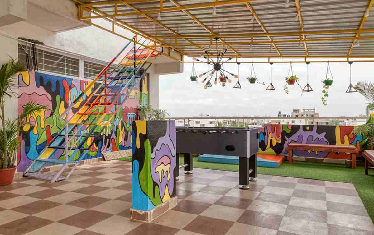 HelloWorld Brookefield is a premium HSR layout property in the city of Bangalore. It offers private, double, and triple sharing rooms that are regularly cleaned by professional housekeepers and an on-site manager. Amenities included here are cloakroom, dartboard area, PlayStation, library, sofa, security, reverse osmosis drinking water, basic shared kitchen, roof garden, table tennis, monopoly, shared dining room, coffee table, hammock, board games, dartboard, microwave, washing machine, etc. Schools like the Vagdevi Vilas School, HAL Gnanajyoti School, major markets like Carrymart Supermarket, Miami Supermarket, shopping malls like Crystal Arcade, Market Square Mall, medical facilities like Jeevika Hospital, New Akshay Mallya Hospital, and Rashtriya Vidyalaya Road are in nearby.