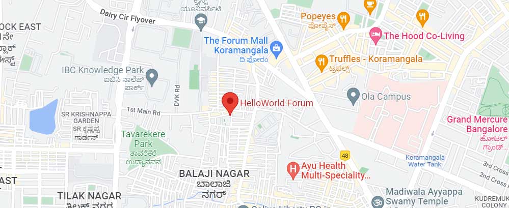 HelloWorld Forum is a state-of-the-art coliving property located in S. Palya in the city of Bangalore. It offers private rooms and shared double rooms where you can experience a lifestyle with great convenience and comfort. The facilities included here are Cloakroom, Security, RO Drinking Water, Basic Communal Kitchen, Coffee Table, Hammock, Board Games, Dart Board, Monopoly, Communal Dining Room, Dart Board Area, Playstation, Library, Sofa, Rooftop Garden, Table Tennis, Microwave, Washing Machine and more. Schools like Christ School, Miani School, major markets like SS SuperMarket, Village HyperMarket, shopping malls like The Forum Mall, medical institutions like Srinidhi Clinic, Health India Hospital, and Jayanagar Metro Station are all nearby.