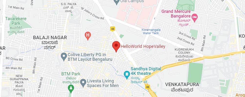 HelloWorld HappySuites is a palatial property located in Arekere, Bangalore city. It offers private rooms and double rooms that say a lot about convenience and comfort. The facilities included here are locker room, security, reverse osmosis drinking water, basic shared kitchen, monopoly, shared dining room, dart board, playstation, library, sofa, roof garden, table tennis, coffee table, hammock, game table, dart board, microwave, washing machine and more. Schools such as Achalya Vidya Mandir, Aradhana Academy, major markets such as Sobha Supermarket, Ever Fine Supermarket, medical institutions such as Aditi Nursing Home, Apollo Hospital, and Yelachenahalli Metro Station are all within close proximity.