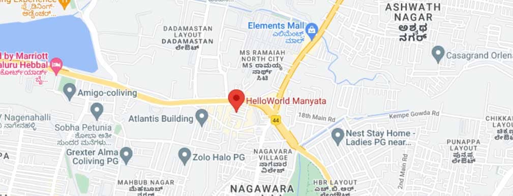 HelloWorld Manyata is a budget Living space located in Nagawara town, Bangalore city. It offers private, double, and triple Sharing rooms, frequently managed by trained housekeepers and an onboard manager. Amenities included here: cloakroom, security, RO drinking water, coffee table, board games, dartboard, monopoly, communal dining room, microwave, dartboard area, Playstation, library, sofa, roof garden, ping pong table, washing machine, and more. Schools like Dhee Global School, Kingston High School, major markets like Galaxy SuperMarket, Easy Bazaar, shopping malls like Elements Mall, medical facilities like JMJ Hospital, Sri Sai Hospital and Cubbon Park Metro Station are all located nearby.