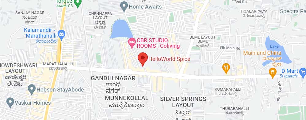 HelloWorld Spice is an affordable accommodation in Marathahalli, Bangalore. It offers private, double, and triple sharing rooms that are regularly maintained by professional housekeepers and an on-site manager. Amenities included here include Cloakroom, Security, Playstation, Library, Sofa, Roof Garden, Table Tennis, Coffee Table, Board Games, Dart Board, Monopoly, and more. Schools like Ravindra Bharathi Global School, HAL Gnanajyoti School, Vagdevi Vilas School, major markets like Maha Bazaar, Carrymart Supermarket, Miami Supermarket, shopping malls like KLM Fashion Mall, Market Square Mall, Crystal Arcade, medical institutions like Jeevika Hospital, MA Hospital, Das New Akshay Mallya Hospital, and Baiyappanahalli Metro Station are nearby.