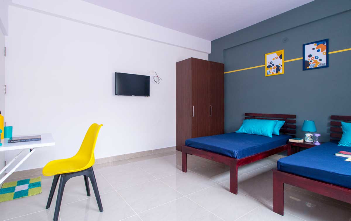 Settl Minori is one of the most elegant and modern places to live. It is located above the Khatabook office in the Marathahalli. It consists of fully furnished and well-equipped private rooms with TV, WiFi, desk, air conditioning, attached bathroom, etc. Key amenities such as cleaning service, high security, geyser, washing machine, induction, fridge, modular kitchen, stylish decor, modern interior, backup power, electricity supply, and much more. The environment is very safe, clean, and full of greenery. It has perfect connections to the train station and the airport. Experience community living with like-minded people in this beautifully landscaped coliving estate.