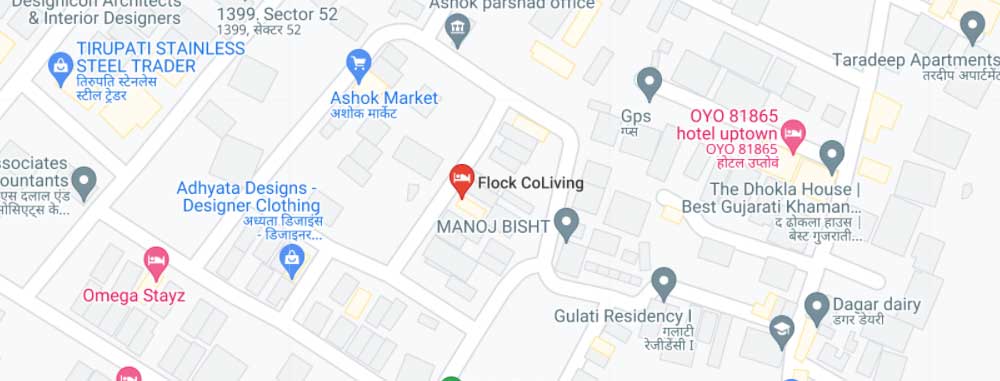 Flock Artemis is a grand, modern and well-developed coliving space for boys and girls located in sector 52, Gurgaon, nearest to Huda city centre metro station. This living accommodation consists of private and double sharing rooms at a reasonable range.Situated in one of the well developed and residential locality, this coliving space is loaded with luxurious hotels and cafes like qaafila, pizza point, sehat cafe etc. Apart from this, transport connectivity and civil metro stations are well connected to sector 52, Gurugram.It offers furnished rooms, AC, housekeeping, security, rapid wifi, fridge, smart TV, kitchen, geyser, CCTV, induction, and significantly more.The entire living space is equipped with a designer interior, comfy beds and sofa, extensive kitchen, dining area and numerous different advantages are accessible for you.Located in one of the posh localities, it gives easy access to other prominent sectors such as sector 49, 50 51, 53 etc.