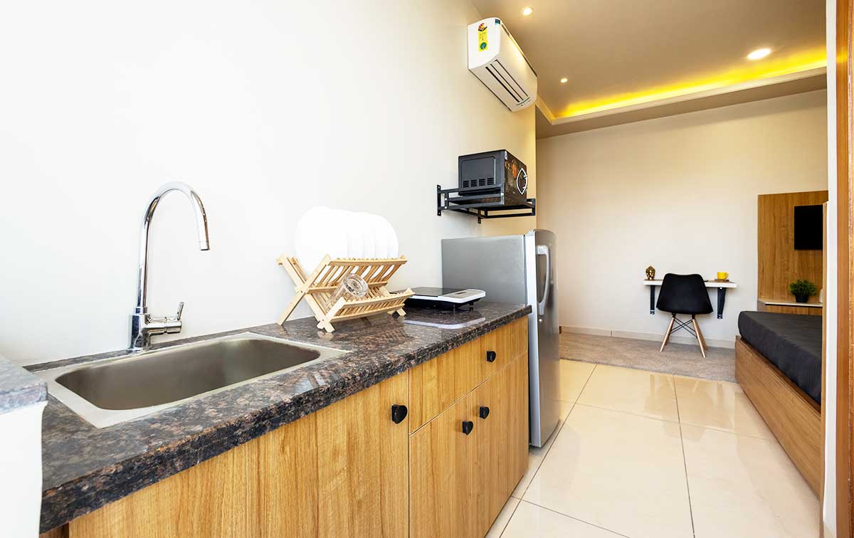 Studio Apartment with modern furniture and other upscaling amenities.