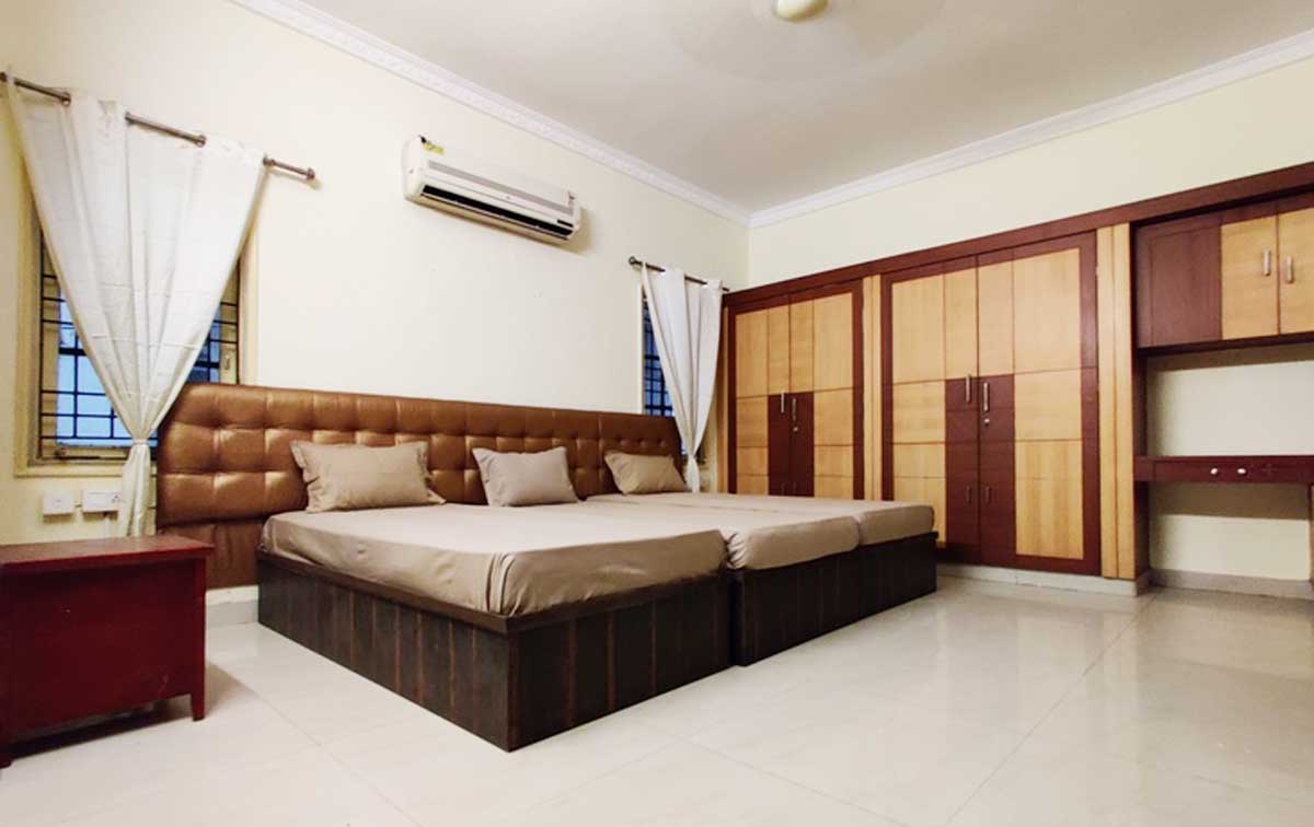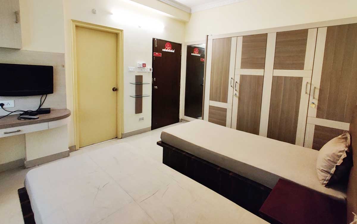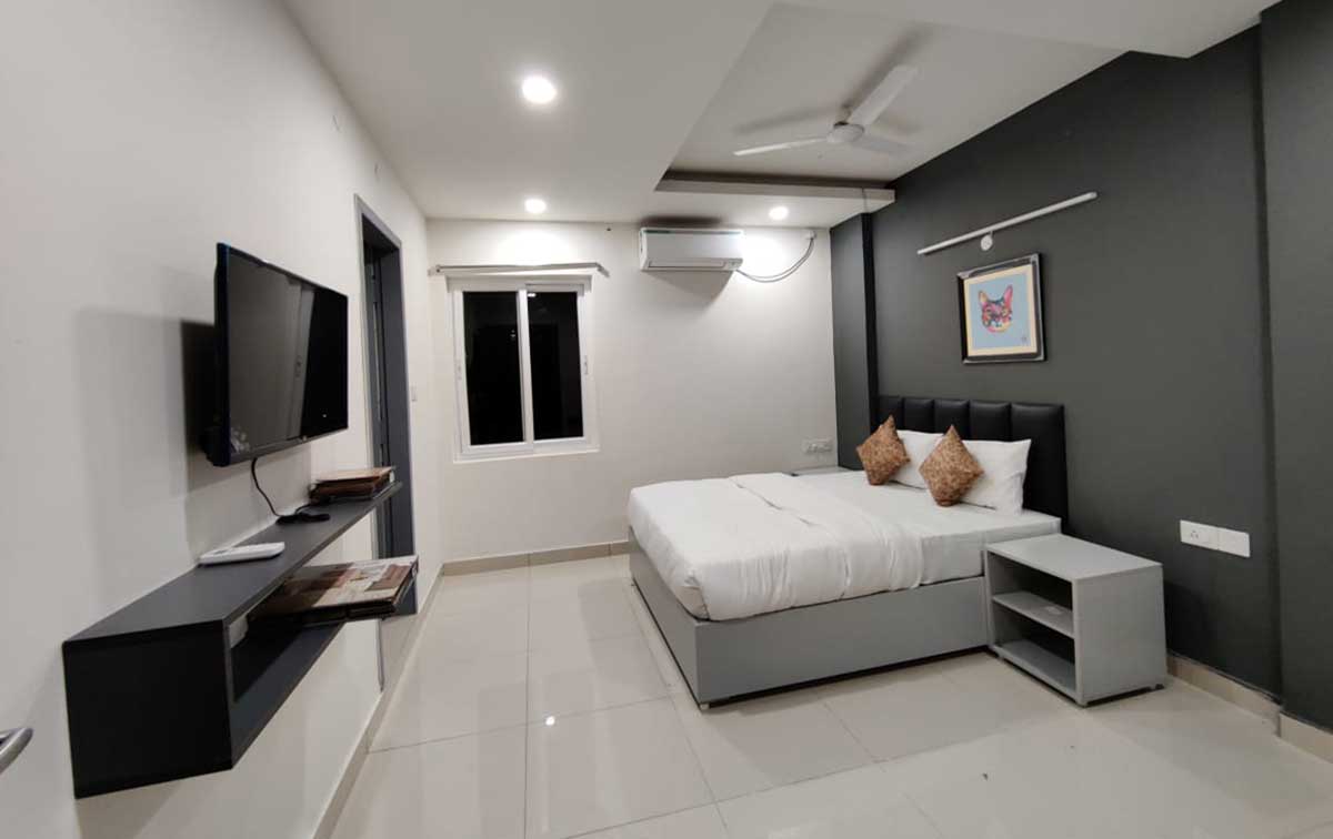 Helloworld Abir is a fully furnished coliving studio located in Madhapur, Hyderabad. It has private rooms, double and triple Sharing rooms with premium services such as air conditioning, high-speed WiFi, wardrobe, cleaning service, 24-hour backup power, smart TV, modern kitchen, parking, washing machine, and the account continues. Aside from this, there is a separate extensive kitchen loaded with essential necessities like a water purifier, refrigerator, or microwave or you can likewise sCommuting to this space is made easier with easy access to the HITEC City subway station and other local transportation options.