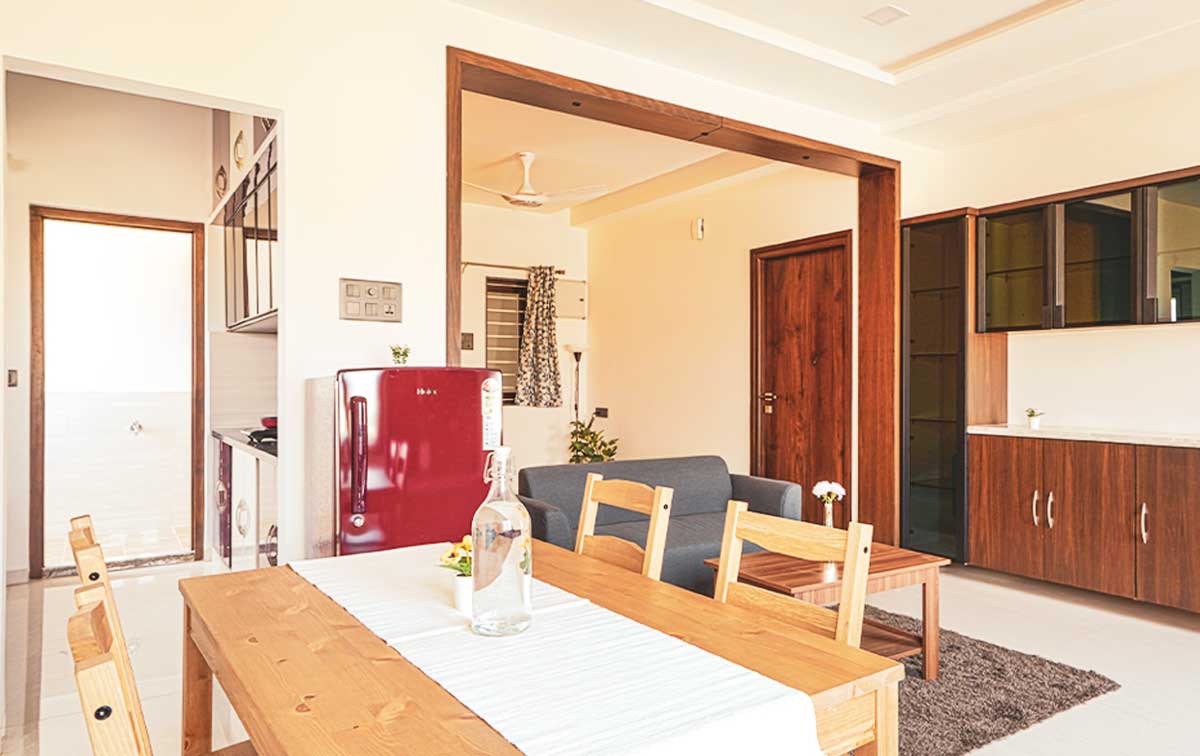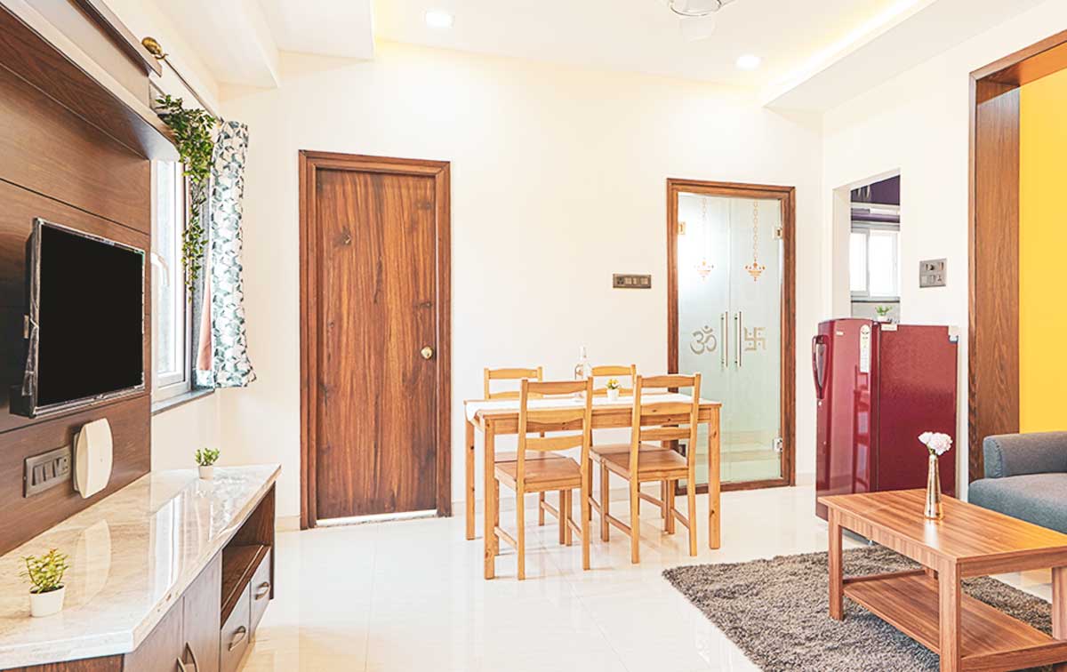 Settl. Gorbio is a stunning coliving space designed for convenience, relocation, and perks. It gives you the option of choosing a private stay or moving in with your friends. In addition, this coliving provides you with all the premium amenities for luxurious living such as high-speed WiFi, 65 inches LED TV, Playstation, washing machine, attached bathroom, shared dining room, modern kitchen, and communal room.