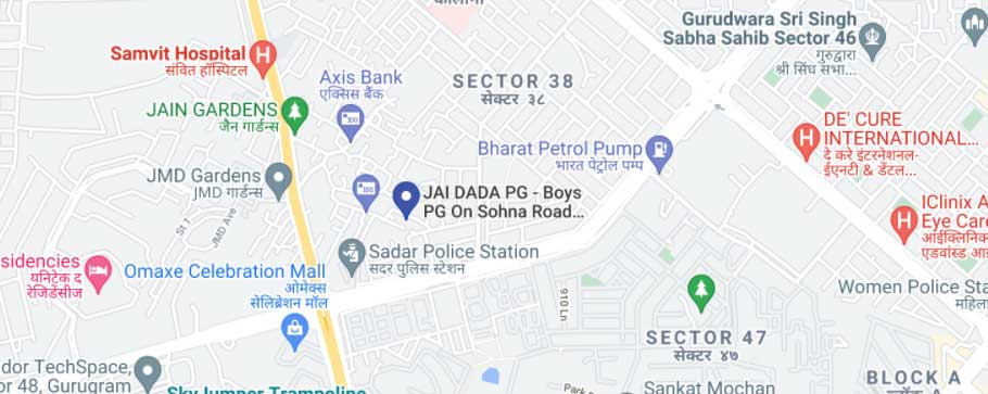 Jai Dada is a well-furnished and beautifully constructed paying guest accommodation located in sector 38, Gurgaon near to Huda city metro station, this exclusively designed property offers private, twin and triple sharing rooms at a very reasonable price including all conveniences and comforts.The guests and visitors get all luxurious advantages such as huge bedrooms, smart TV, chic furnishing, high-speed wifi, security, AC, housekeeping, ample parking, power backup and more. Along with this, a fully furnished kitchen is provided to you where you can prepare your favourite snacks. The attached bathroom is perfectly built up including a hot water supply, geyser and shower. Moreover, the lobby, terrace, bedrooms and balcony are routinely cleaned, sanitized and assembled. Premium quality and delicious available for all three times (breakfast, lunch and dinner) both veg and non-veg. Located in the middle of the city, sector 38 is nearest to Rajiv Chowk, NH8 and Sohna road, it's also well connected with other prominent areas like Medanta hospital, Gurdwara Singh sabha, sector 47 park, Devilal sports complex and much more. Come and experience the homely vibes in Jai dada living accommodation. If you are a student or job seeker and planning to relocate to a smart city like Gurgaon this living space fits perfect for you.
